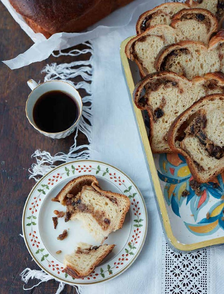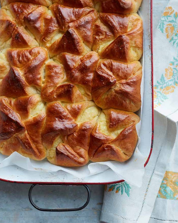 This rich, golden brioche is filled with curd cheese, sugar, eggs and sultanas, baked especially for Easter. On Easter Eve, it’s taken to church to be blessed during the liturgy, then shared as the first bite to break the Lent.